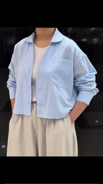 شومیز زنانه شیما آستین بلند آبی خنک تابستانه